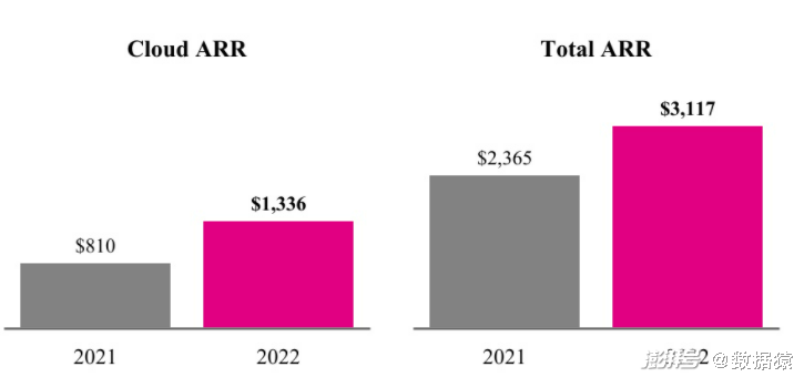 云服务的强劲增长还可以从另一运营指标上看出,财报显示,截至2021-2022年1月31号的财年报告,Splunk云年度经常性收入(“云ARR”)分别为8.1亿美元、23.65亿美元,占年度经常性总收入(“总ARR”)的60.63%、75.87%。(注:云ARR表示在报告期结束时云服务合同的年度收入运行率。ARR总额表示在报告期结束时,云服务、定期许可证和维护合同的年度收入运行率。)由此也可以看出,Splunk云服务业务的增长较为强劲。